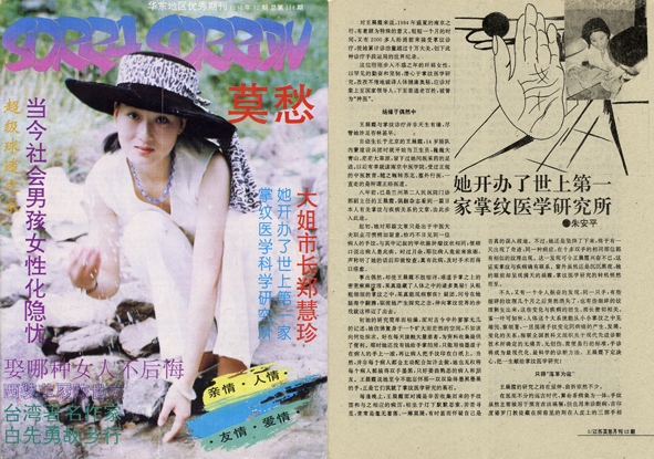 1994年12月1日出版第114期月刊《莫愁》刊登“她开办了世界上第一家掌纹医学科学研究所”