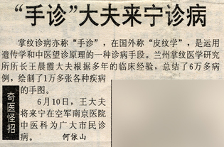 · 1994年2月25日《消费报》刊登“掌纹神医义务就诊”