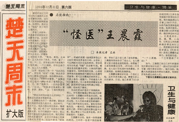 1994年12月31日《楚天周末》刊登“怪医”王晨霞