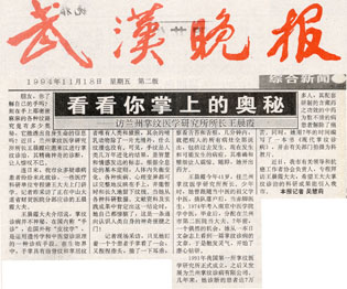 1994年11月18日,《武汉晚报》刊登“看看你掌上的奥秘”。